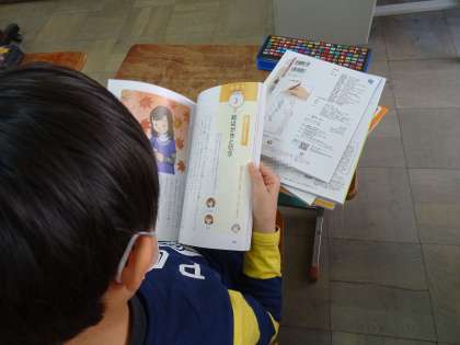 新しい教科書を受け取りました。早速,中身を確認していました。