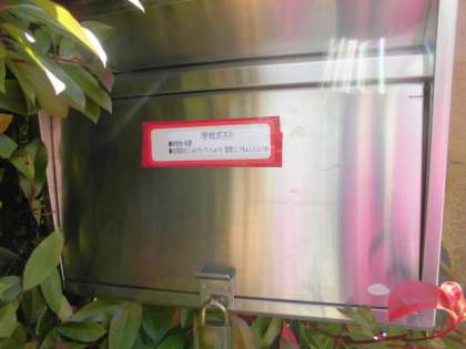 学校ポストについてお知らせします。家庭学習等のご提出にお使いいただけます。西門(正門)に設置しております。