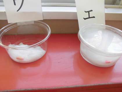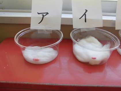 昨日発芽の条件を調べるため,学校でも実験をしています。一日経ちましたが,今のところ特に大きな変化は見られません。今後どのような育ち方をするか楽しみですね。