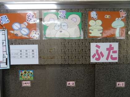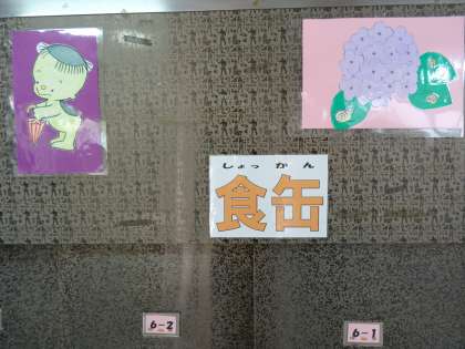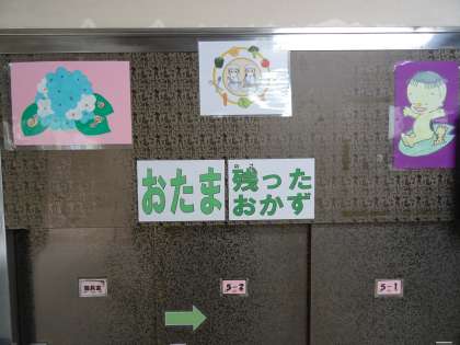 おかずの棚です。毎日の給食がとても楽しみになるような掲示でいっぱいです。