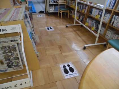 図書室(としょしつ)にも,足(あし)あとが!