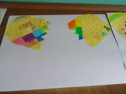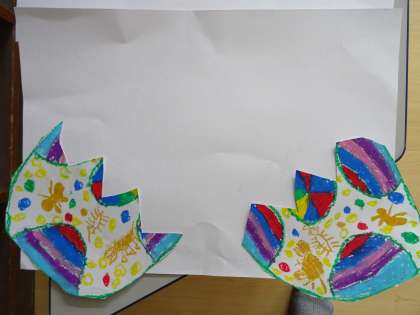ひみつのたまごをつくっています。画用紙に貼り付けている子どももいました。