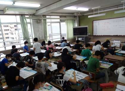 ♪6年生 図画工作「わたしの大切な風景」〜着色開始〜