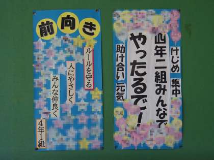 4年生の学級目標です。実物には児童のメッセージが添えられていますが,個人情報保護のため,加工して掲載しております。ご了承ください。