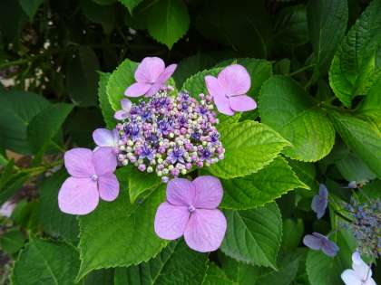 中庭のアジサイです。雨が降るのを待ちわびているようです。