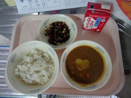 カレーは子どもたちが楽しみにしている人気メニューの1つです。「チキンカレー」は,じっくり煮込んだ手作りのルーが,美味しさの秘密です。