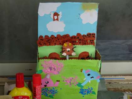 つくりたいイメージに合わせて材料や用具を選び,工夫して表現しています。