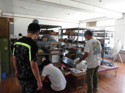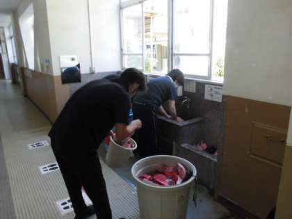 2学期開始に向けて,トイレのスリッパの消毒や理科準備室の備品の整理整頓,体育倉庫の整理整頓などをしました。