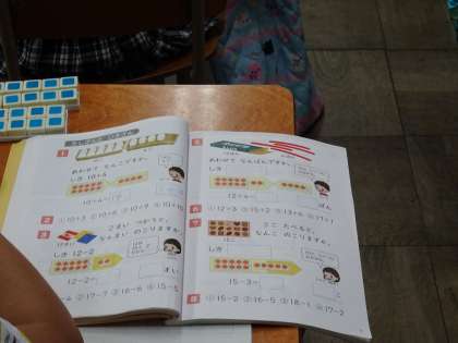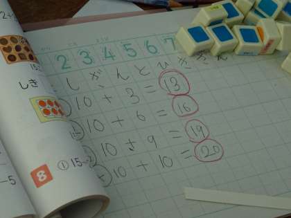 数図ブロックの操作を通して,11から20までの数の数え方を考え,表現しました。