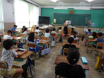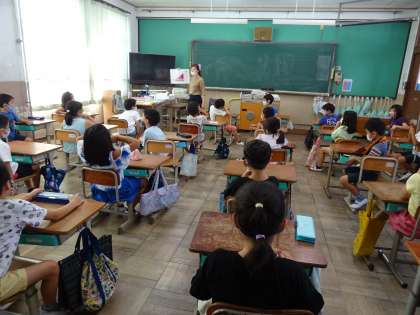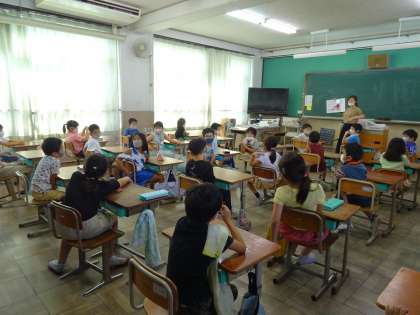 声のものさしです。声の大きさについて考えました。声の大きさを時と場面によって使い分けることは,とても大切です。