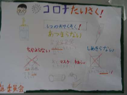 元気委員会からのお知らせです。新型コロナウイルス感染拡大防止の掲示物を掲示しました。