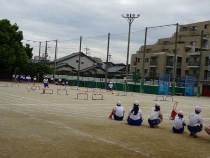 ハードル走です。リズムよくまたぎ越せるかが,ポイントです。