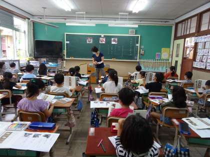 教材文「うみのかくれんぼ」を読み,「問い」の文を確かめました。