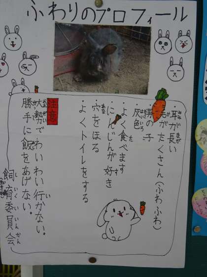 本校ウサギのふわりの紹介です。とてもかわいいです。