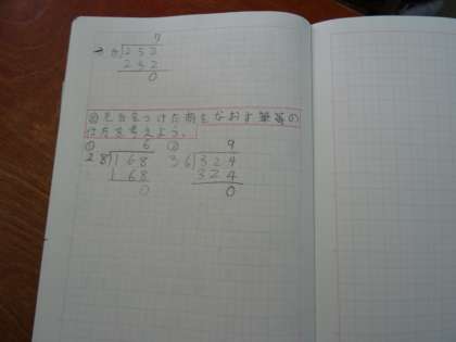 見当をつけた商をなおす筆算のしかたを考えました。
