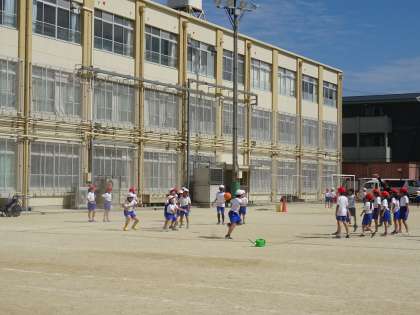いろいろな遊び方を知り,遠くに投げたり,狙って投げたりして楽しみました。