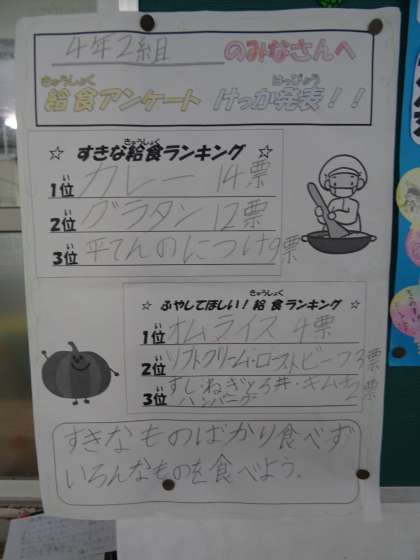 ♪4年生 給食アンケート