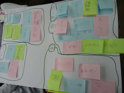 調べたことを基に学習問題について話し合い,関係図にまとめました。