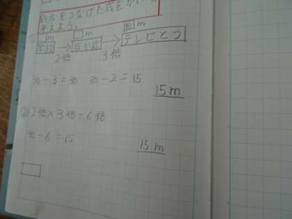 関係図を使って,順番に,何倍かを求めてから考えるとよいことが分かりました。