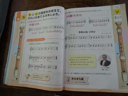 「ソ」の運指を知り,音色や運指に気を付けて,「シ」「ラ」「ソ」の音を演奏しました。