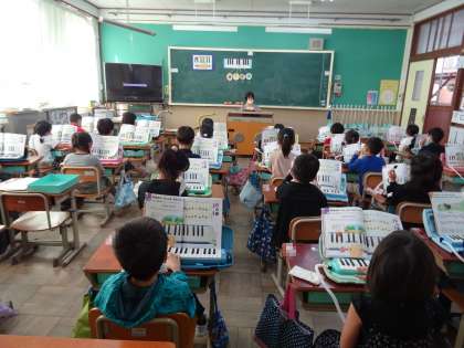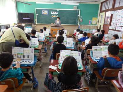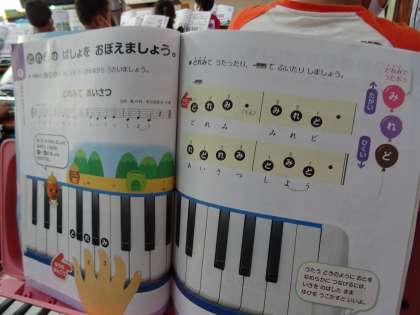 音の高さを確かめながら「どれみであいさつ」を階名唱したり演奏したりしました。