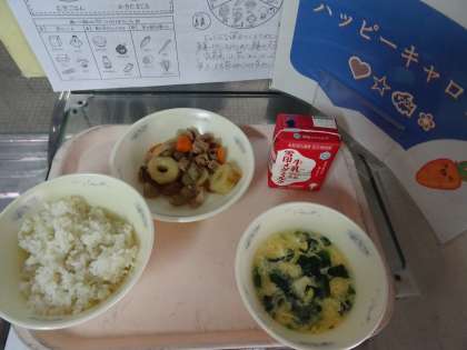 丈夫な体をつくるためには,栄養バランスがとれた食事が大切です。「筑前煮」には,旬の「れんこん」と「ごぼう」を使っています。今日は,秋のめぐみを味わいました。