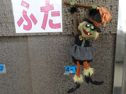 子どもたちが通ると,人形が反応します。