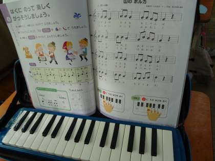 2拍子を感じ取りながら「山のポルカ」の旋律を鍵盤ハーモニカで演奏しました。