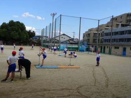 抜き足がバーに触れないように,空中での動きを意識して跳びました。