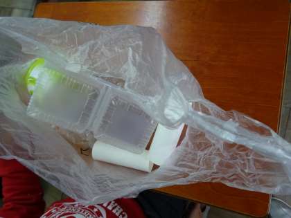 材料に絵の具をつけて写したら,どんな形が写せるか,どのように写したらもっと楽しい模様になるかを考えました。
