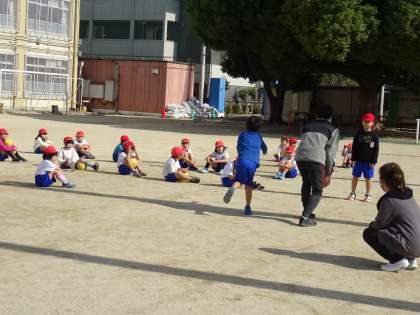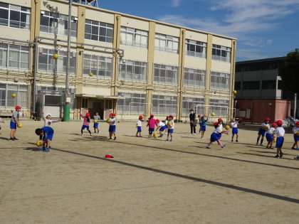 いろいろなボール遊びの行い方を知り,力いっぱい投げたり,友達に受けやすいボールを投げたり,落とさず受けたりすることを工夫して楽しみました。