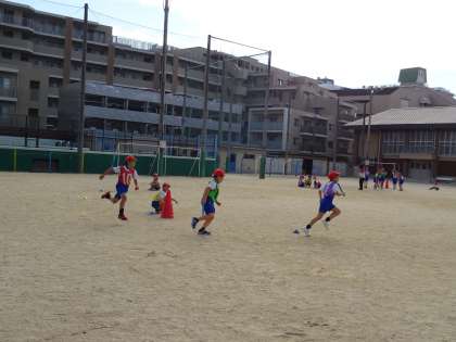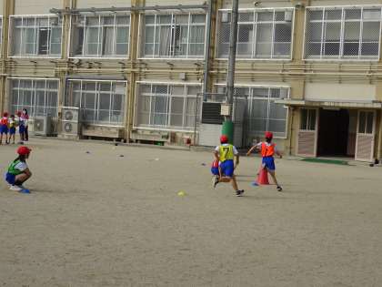 調子よく走ったり,走りながらバトンの受渡しをしたりしました。