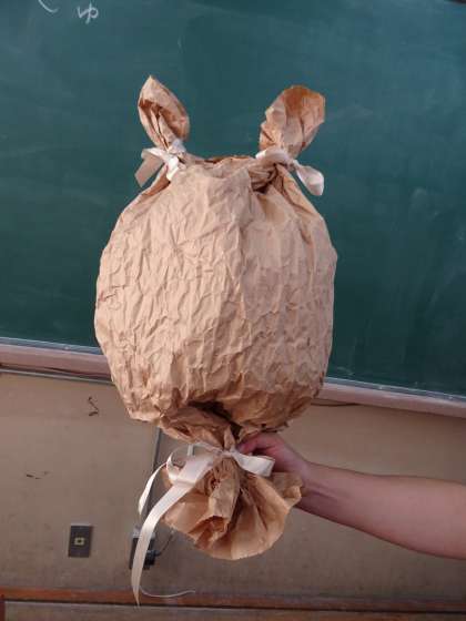 袋をいろいろなところをしばったり,ねじったりして,仲良くなりたい「友達」のイメージを膨らませながら,工夫して表しました。