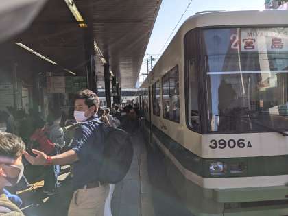 広島駅に到着しました。広島電鉄に乗り,原爆ドームに向かいます。