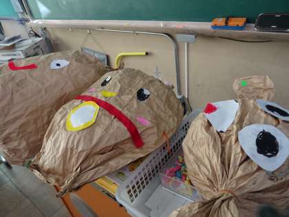 つくりたい「友達」になるように,顔をかいたり,飾りを付けたりしました。