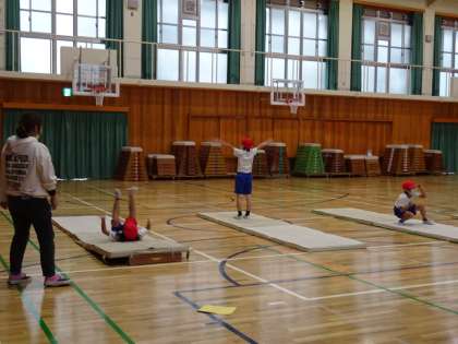 いろいろな場で,自分ができるマットを使った遊びに挑戦しました。