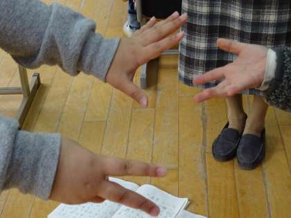 どちらかの手を引っ込めて,勝ち負けを決めました。