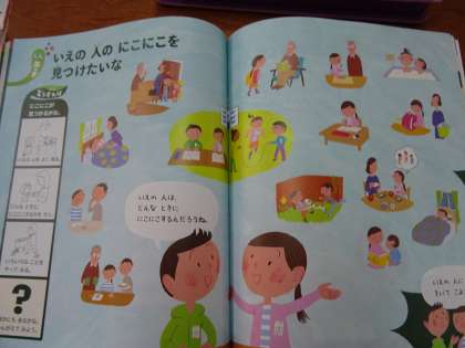 身近な人がどんなときに「にこにこ」しているか,身近な人の「にこにこ」を見付けました。