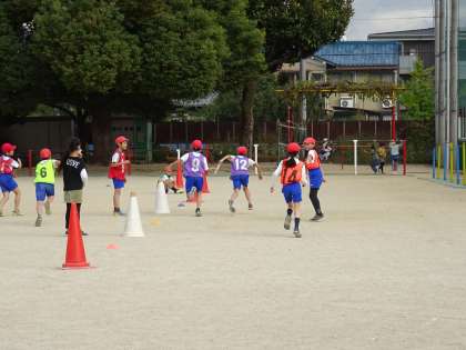 バトンを初めは後ろを向いて確実にもらい,慣れてきたら前を向いてもらえるようにしました。