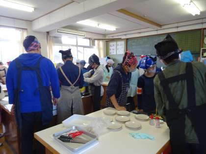 グループで検討した調理計画をもとに,家族のために考えた「1食分の献立のおかず」を作りました。