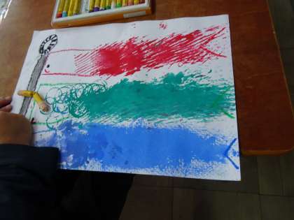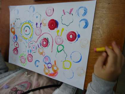 写し出される形や色などの変化を感じながら,パスなどでかき加えました。