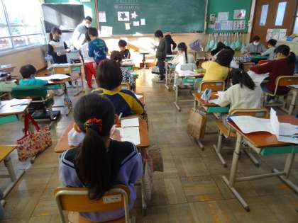 どんなものを型紙にしたら面白いか考え,形や色を工夫して表しました。