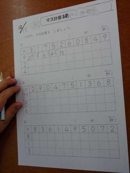 「かけ算のます計算」に挑戦しました。