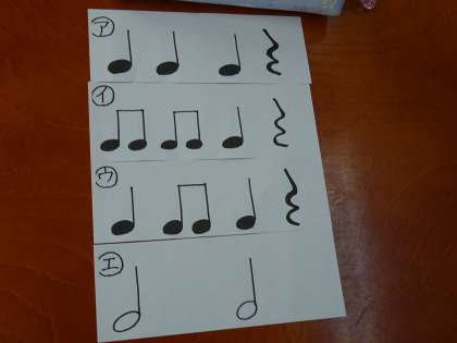 拍に乗って二人でお話しするように,楽器を鳴らしました。