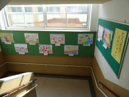 1月の学年掲示です。図画工作の作品を掲示しています。