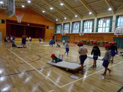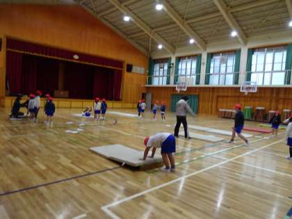 ♪1年生 体育「マットあそび」〜どんどん挑戦しよう〜