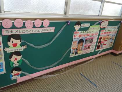 保健室前の掲示板に,感染症拡大防止のための掲示をしています。