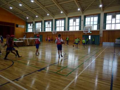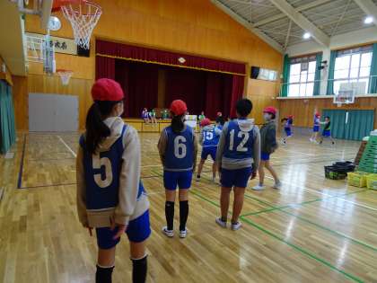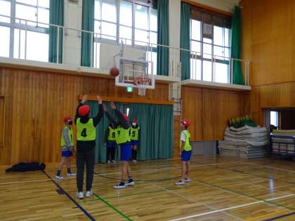 シュートにつながるようなすばやくタイミングのよい動きや作戦を工夫しながら,相手チームに挑戦して楽しんでいます。