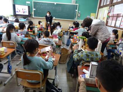 表したい形になるように,箱の組み合わせ方や接着剤の選択,接着の方法を工夫して表しました。