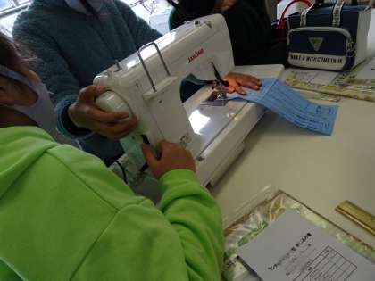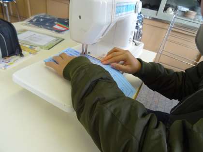 練習布を使って,ミシンの扱い方に慣れています。
